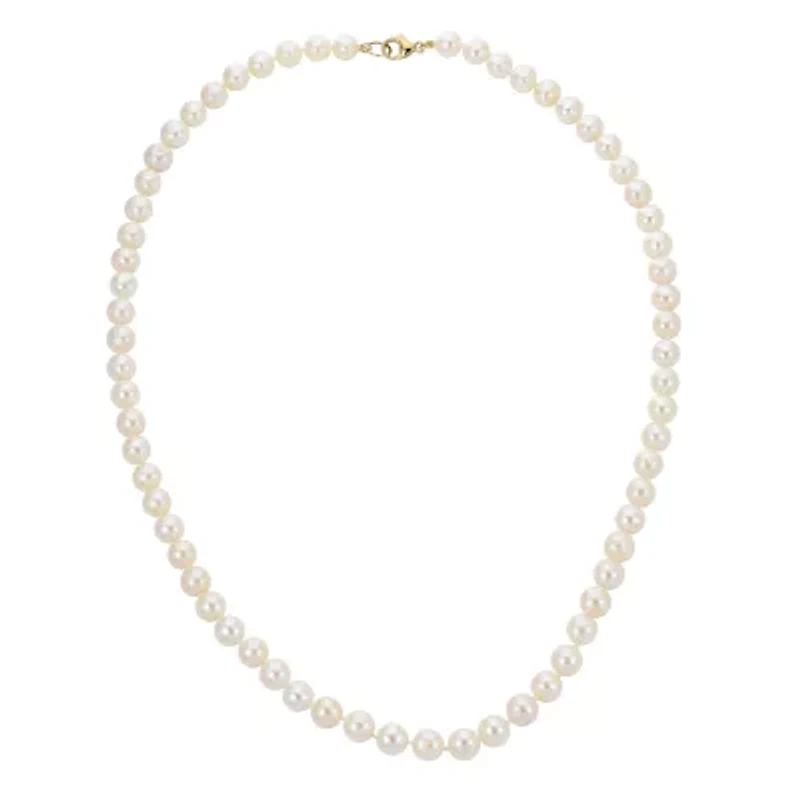 Classic and effortlessly elegant, this 20" strand necklace features luminous 7–8mm cultured freshwater pearls with a soft, natural glow. Finished with a secure 14K yellow gold lobster claw clasp, it’s a timeless essential—perfect worn alone for refined simplicity or layered for modern sophistication. Lobster closure Polished finish Imported Product Specifications 0.0000 Material & Care Metal, Gold Clean with a soft cloth.