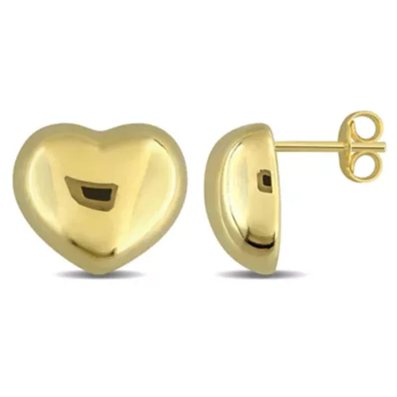 Add a touch of romance and charm to your jewelry collection with these puffed heart stud earrings in 14K yellow gold. Featuring softly rounded edges and secure butterfly backs, they provide comfortable, all-day wear while showcasing a playful yet refined design. The polished finish catches the light beautifully, highlighting the gentle curves of each heart for a delicate, elegant sparkle. Effortlessly combining timeless elegance with a hint of whimsical style, these studs bring a feminine, polished touch to any outfit. 2 Post back, Butterfly clasp Polished finish Warranty available, 60 days Italy Imported Material & Care 14K Yellow Gold Metal, Yellow Gold Clean with a soft cloth.