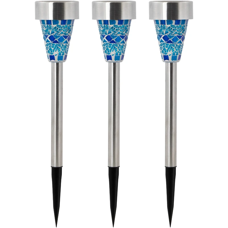 15.5" Blue Mosaic Stained Glass Solar Powered LED Pathway Markers