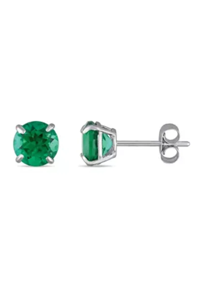 These classic Stud Earrings are crafted in 10k white gold and feature round-cut, prong-set 6mm created emerald gemstones. These earrings are enhanced with a high polish finish. 2 Lab Created Emeralds Polished finish Prong setting 1-year warranty Imported Belk Exclusive Product Specifications 6 mm W x 6 mm H 1.62 ct. t.w. Lab Created Emerald Material & Care White Gold Use gold polishing cloth on gold items