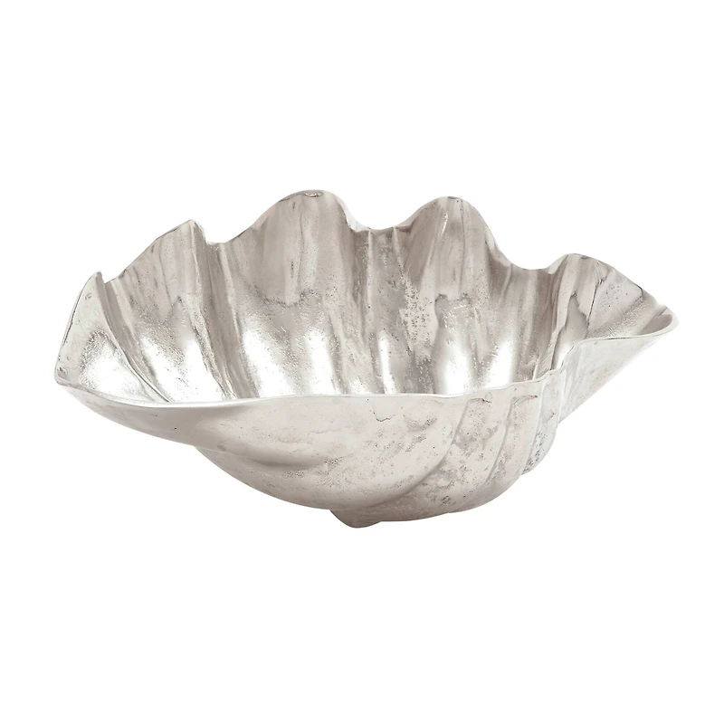 This coastal style inspired, this 17" Silver Aluminum Coastal Decorative Bowl will make a great container or bowl for your décor to create a cohesive look in your laidback home. Let this accent piece provide a sense of style to your home by displaying it on top of a shelf, countertop, mantel, or an accent table. This shell inspired bowl is perfect for creating a beachy focal point to any room in your home.Details: Silver 7" x 17" x 11" Aluminum Made in India Recommended for indoor use