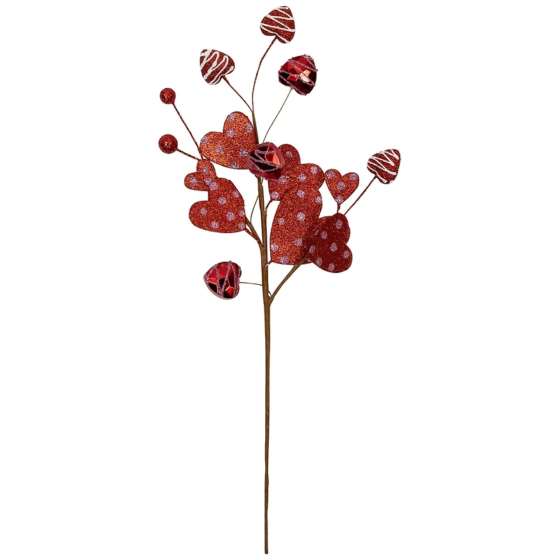 18" Red Shimmering Glitter Valentine's Day Heart Spray