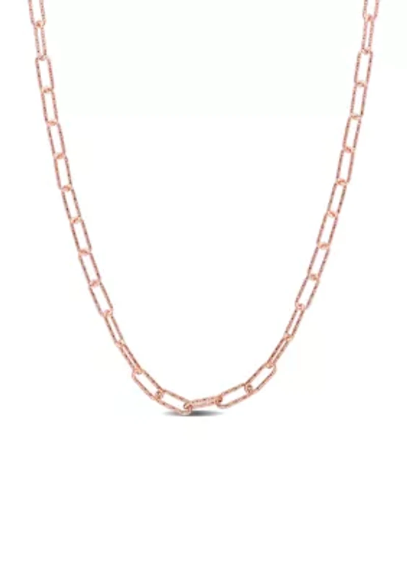 This splendid Paperclip Necklace is crafted in gleaming rose gold plated sterling silver, this ravishing necklace is comfortably secured with a lobster clasp. Enhanced with a high polished finish, this captivating necklace is made in Italy and is sure to make you the talk of the town. Lobster closure Polished finish Warranty available, 1 Year Italy Imported Belk Exclusive Product Specifications 3mm Width, 16" Material & Care Metal, Sterling silver Clean with a soft cloth.