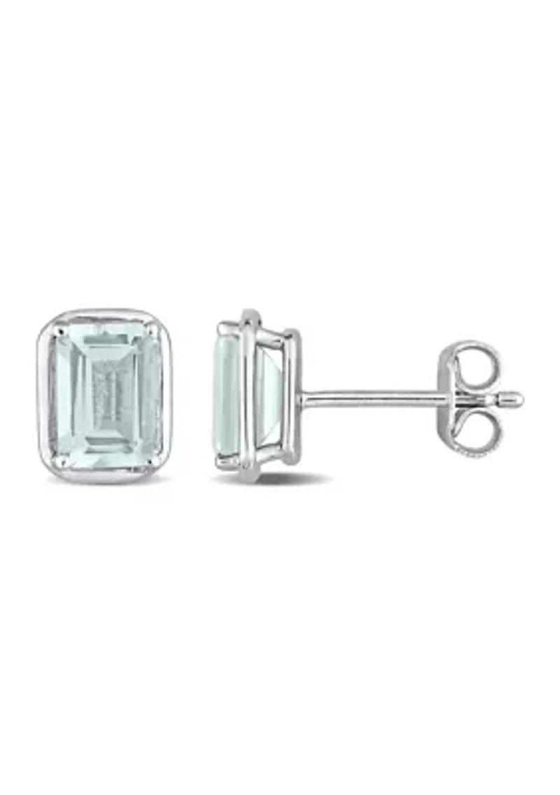 1.90 ct. t.g.w. Aquamarine Bezel Style Emerald Cut Stud Earrings in Sterling Silver in Chattanooga, TN