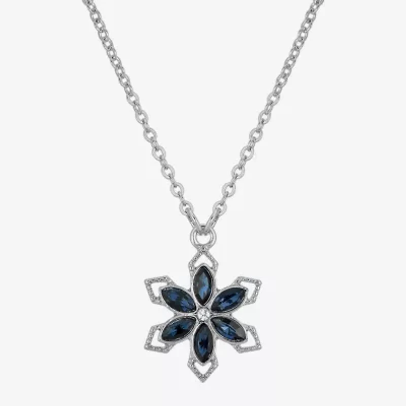 1928 Silver Tone Womens Blue Crystal Alloy Flower 16 Inch Pendant Necklace