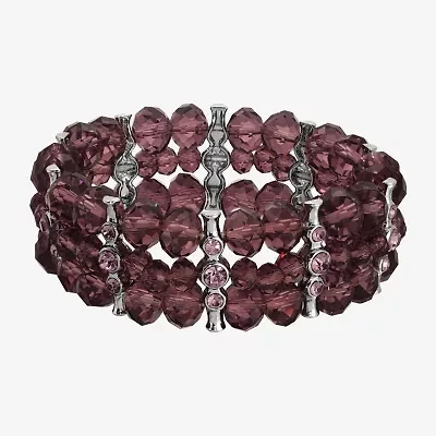 1928 Silver-Tone Womens Purple Round Stretch Bracelet