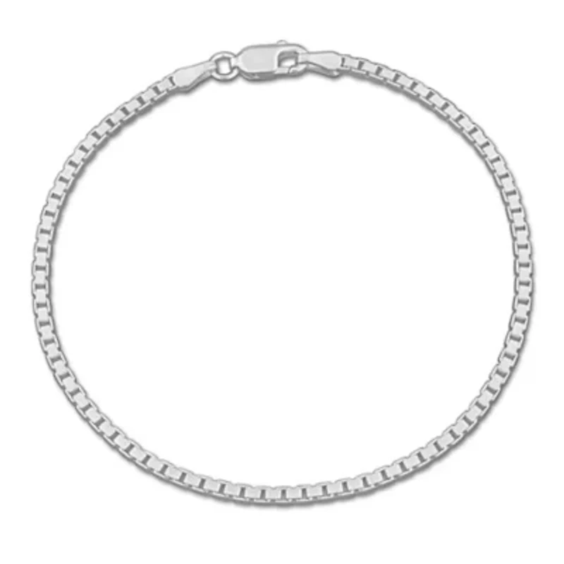 Enhance your jewelry collection with this elegant 1.9mm box link chain bracelet, expertly crafted in sterling silver. Its classic yet versatile design catches the light beautifully, creating a subtle shimmer that elevates any outfit, from casual daywear to evening ensembles. Perfect for layering with other bracelets or wearing alone as a statement of understated sophistication, this piece blends timeless elegance with modern style. Durable and refined, it’s a must-have accessory for adding a polished, luxurious touch to every look. Spring ring clasp Polished finish Warranty available, 60 days Italy Imported Product Specifications 7.25" Material & Care Sterling Silver Metal, Sterling silver Clean with a soft cloth.