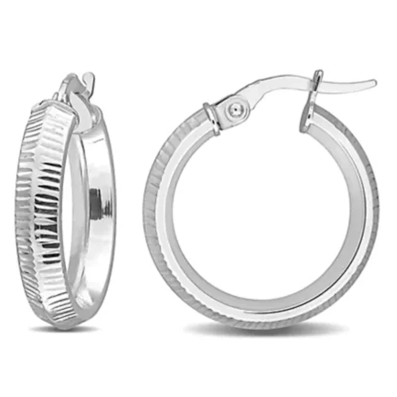 19mm Hoop Wide Ribbed Earrings in 10K White Gold in Chattanooga, TN