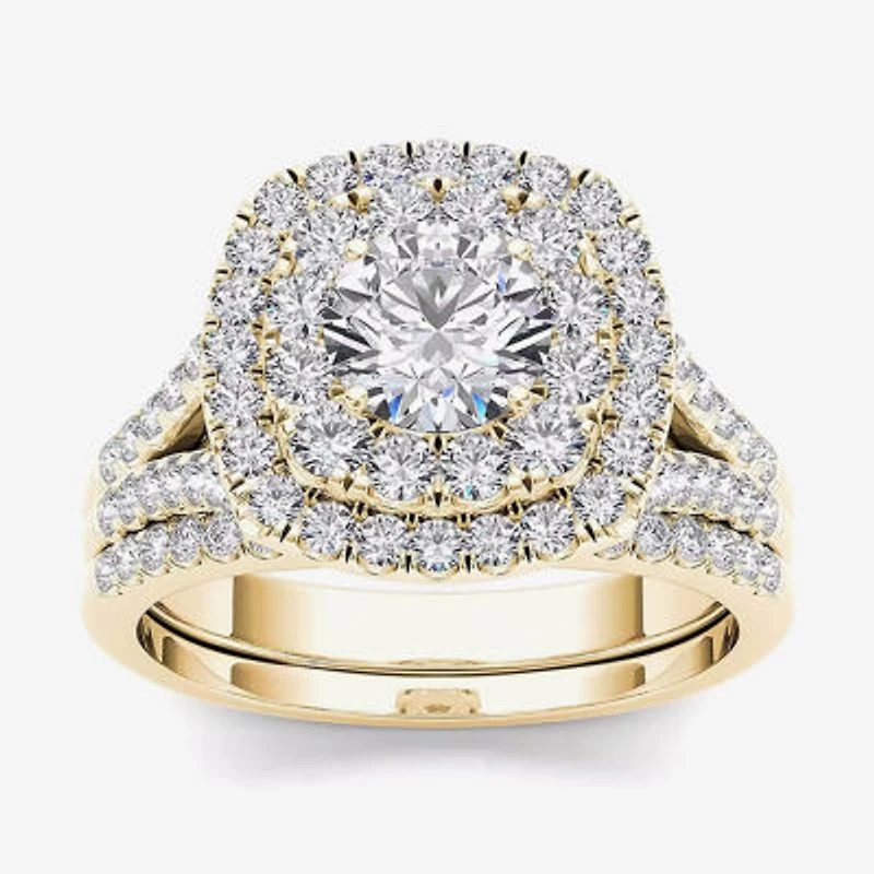 Make everyone notice her hand with our 2 ct. t.w. yellow gold bridal set.