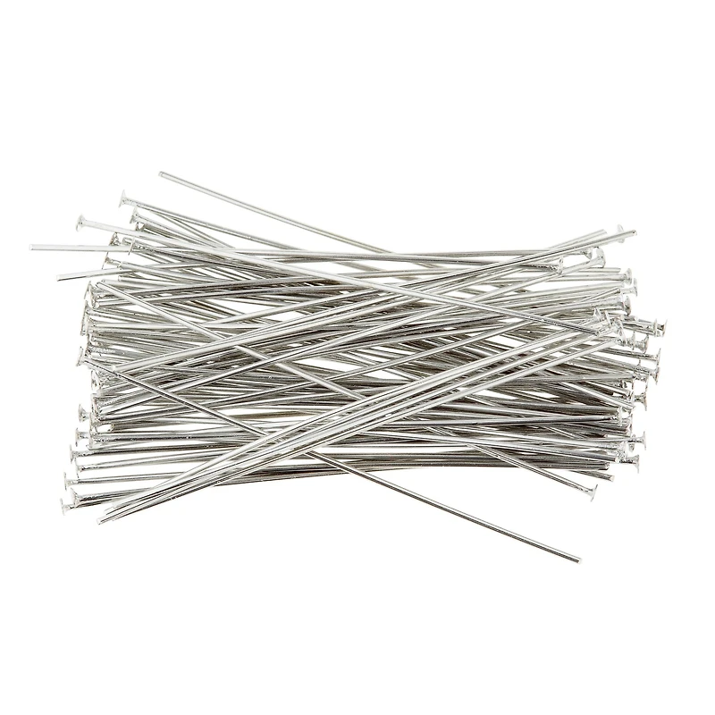 Head pins make it easy to create your own beaded earrings and jewelry pieces. Slip the head pin through the bead hole so that it rests on the head end of the pin. Bend the other end of the pin into a loop and connect to decorative wire or your earring wire. Details:Available in multiple metallic finishes2" (5 cm) long72 head pinsNickel free