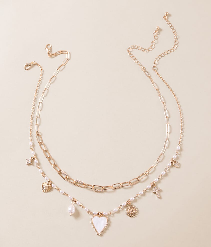 2 Pack Faux Pearl Charm Necklace Set