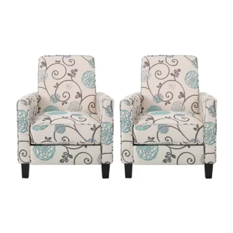 Having limited space in your living room does not mean you have to settle for inferior furniture. Our charming recliner club chair set offers impressive comfort while maximizing your living space with its petite design. Featuring piped edges, smooth upholstery, and sleek tapered legs, these recliners bring an atmosphere of refinement to any room. With an air of contemporary style, our recliner set offers an attractive upgrade for your home, allowing you to easily kick up your feet for a relaxing respite regardless of your space limitation.