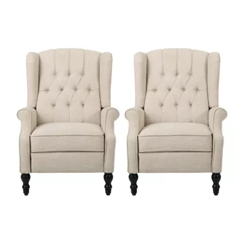Luxurious comfort and refined style are at your fingertips with our timeless recliner. Sure to bring your interior space a stunning upgrade, our armchair uses a smooth pushback reclining mechanism and carefully crafted accents to tie your home together with absolute sophistication. This pushback recliner features gorgeous details such as button tufting, diamond stitching, tonal piping, and an outstanding studded trim to bring your decor to the next level. Finished with a lovely wingback design and rolled recessed arms, our recliner is as stylish as it is functional.