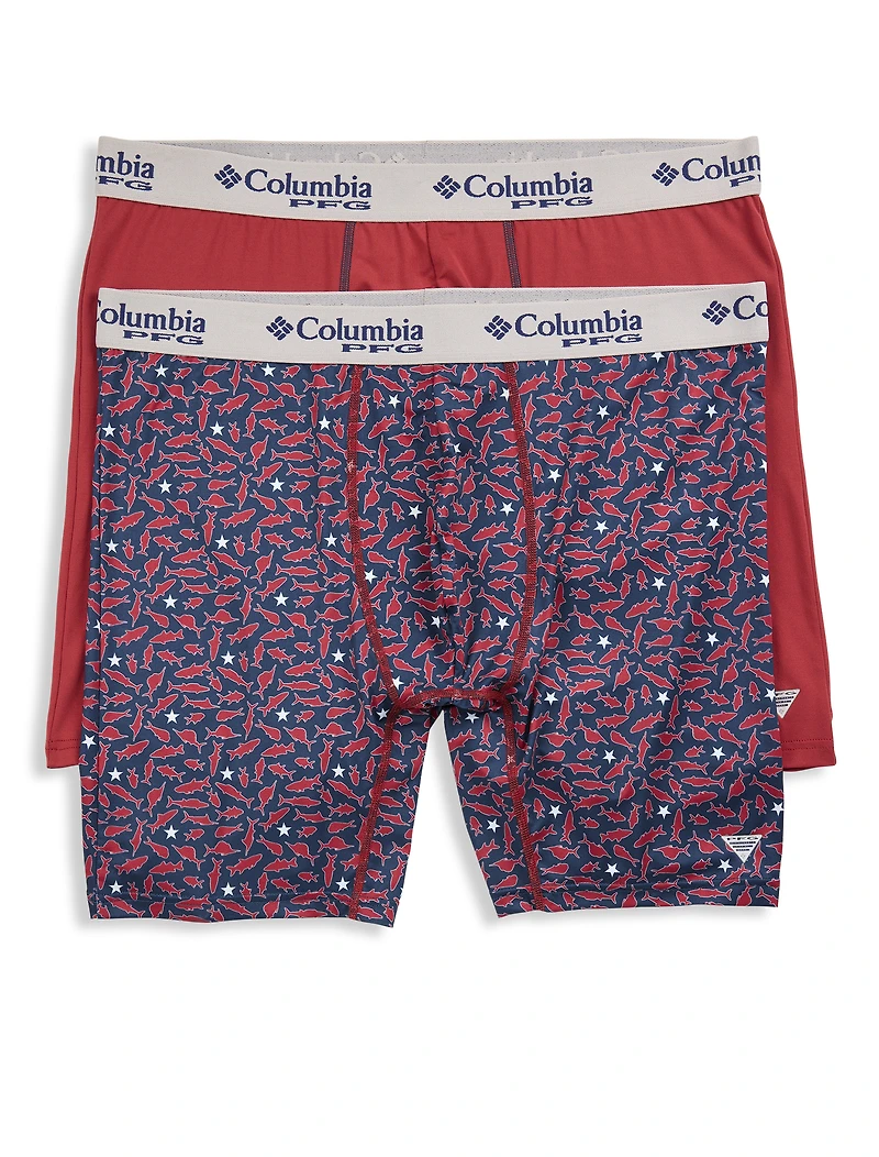 For the fishing enthusiast, a contoured fit and flat, anti-chafing stitches ensure you'll stay comfortable all day in these tagless, breathable PFG (Performance Fishing Gear) boxer briefs from Columbia. With proper proportions that offer full coverage for Big and Tall guys, they're crafted in a polyester and spandex blend that's designed to keep you cool and allow for the freedom to move without restriction. The 2-pk set features one fish-patterned pair and one solid.