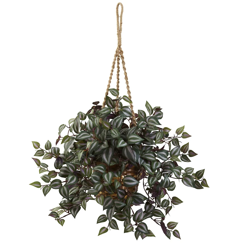 The Inchplant is one of nature's most interesting plants, and a decorating favorite. And this lovely re-creation perfectly captures that natural splendor, and packs it into a beautiful hanging basket. But the best part is, you won't have to get on your tippy-toes to water it, and you'll never need to trim it (because being a silk plant, it won't "wander"!) Ideal for home or office, this piece makes a thoughtful gift as well. Silk plants are manufactured using synthetic materials, such as polyester material or plastic, and are well designed and constructed to be life-like in appearance. Details:Green20" x 24" x 24"Lush multicolored leavesMade with synthetic material