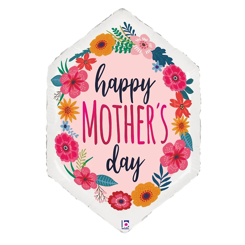 Celebrate your favorite mom with this pretty balloon. Featuring a mix of colorful flowers around a sweet "happy MOTHER'S day" message with a satin finish, this lovely balloon will look great in a balloon bouquet or paired with real flowers.Details:Multicolor design30" (76.2 cm)Metalized polyester filmRequires air or helium inflation