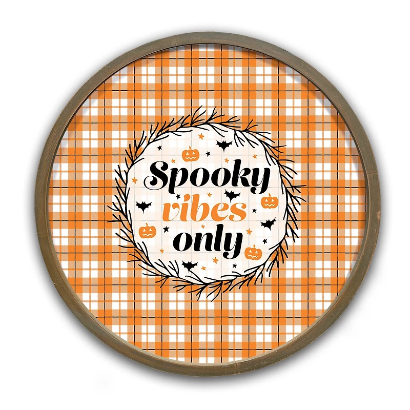 20" Spooky Vibes Only Halloween Plaid Round Framed Print