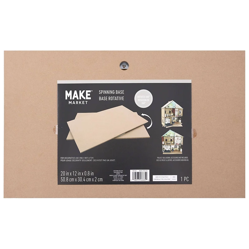 Rotate your miniature scenery with this spinning base by Make Market. Place a small dollhouse or miniature scene on top of the base and rotate 360° to see all angles of the display.Details:Brown20" x 12" x 0.8" (50.8cm x 30.4cm x 2cm)Rotates 360°For decorative use only. Not a toy.MDF and iron
