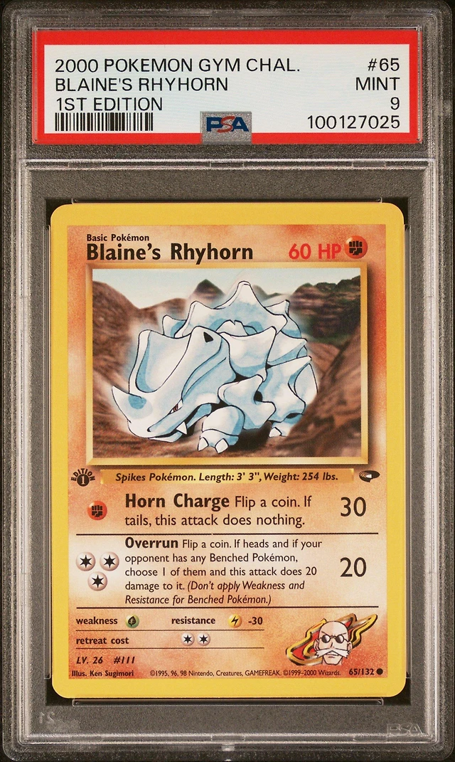 2000 Pokemon Gym Challenge 65 Blaine's Rhyhorn 1st Edition PSA