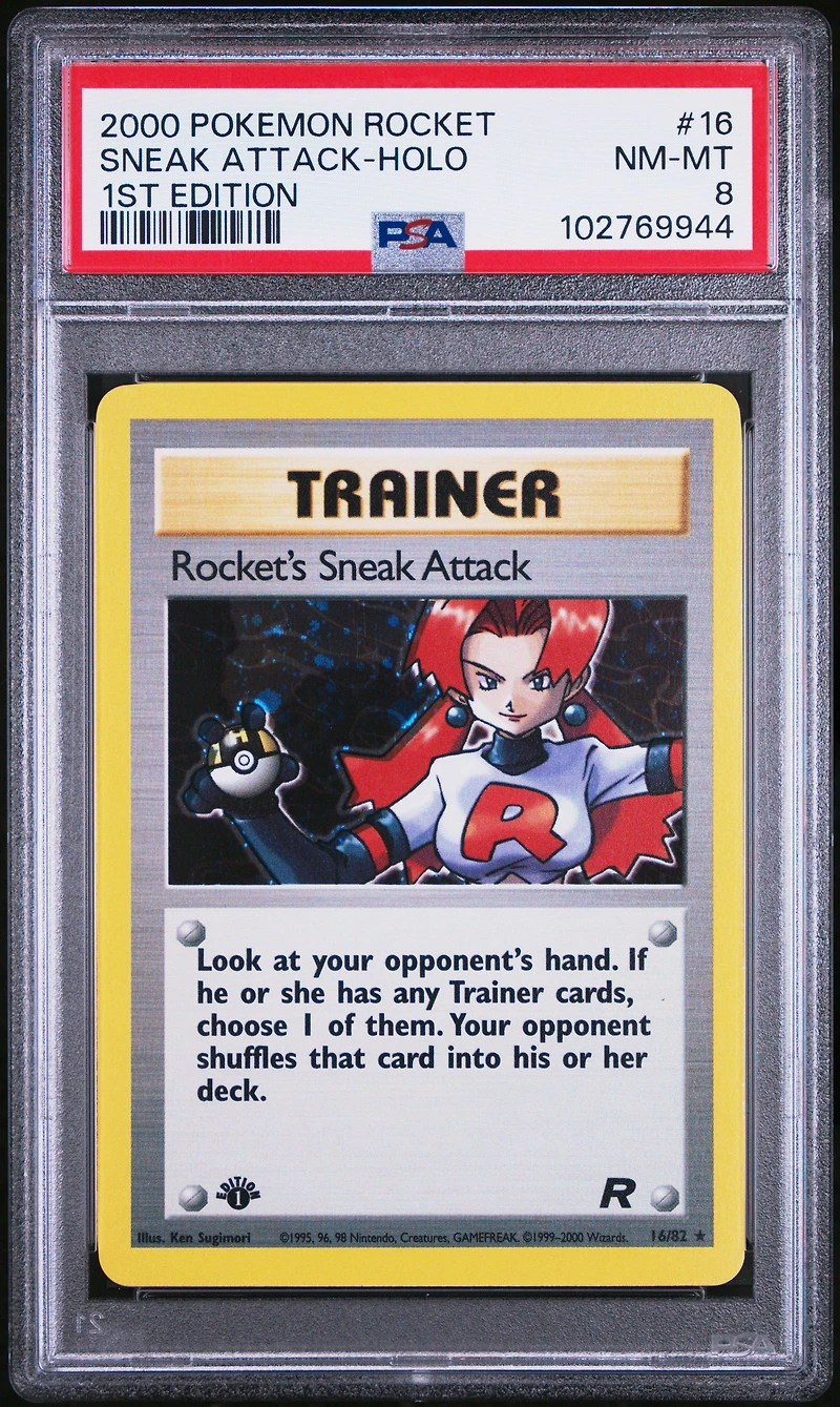 2000 Pokemon Rocket 16 Rocket's Sneak Attack-holo 1st Edition PSA 82000 Pokemon Rocket 16 Rocket's Sneak Attack-holo 1st Edition PSA 8