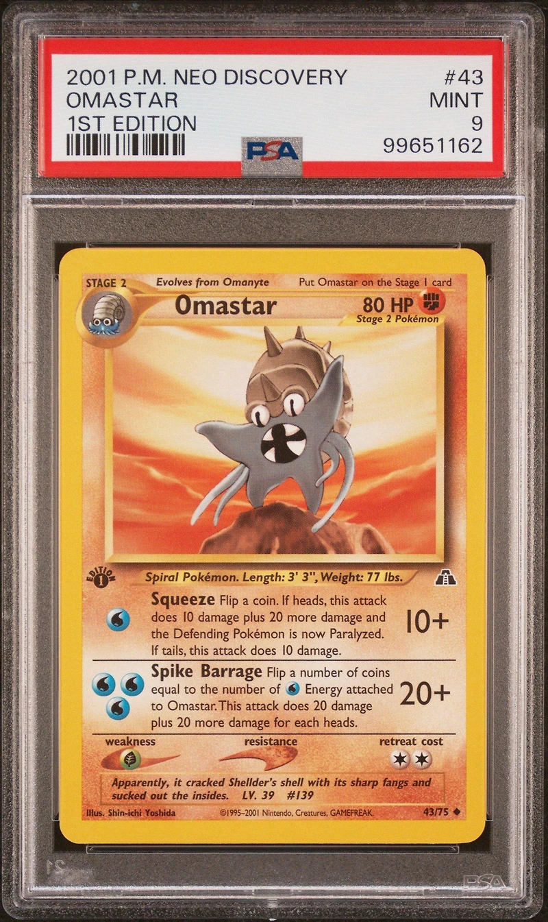 2001 Pokemon Neo Discovery 43 Omastar 1st Edition PSA 92001 Pokemon Neo Discovery 43 Omastar 1st Edition PSA 9
