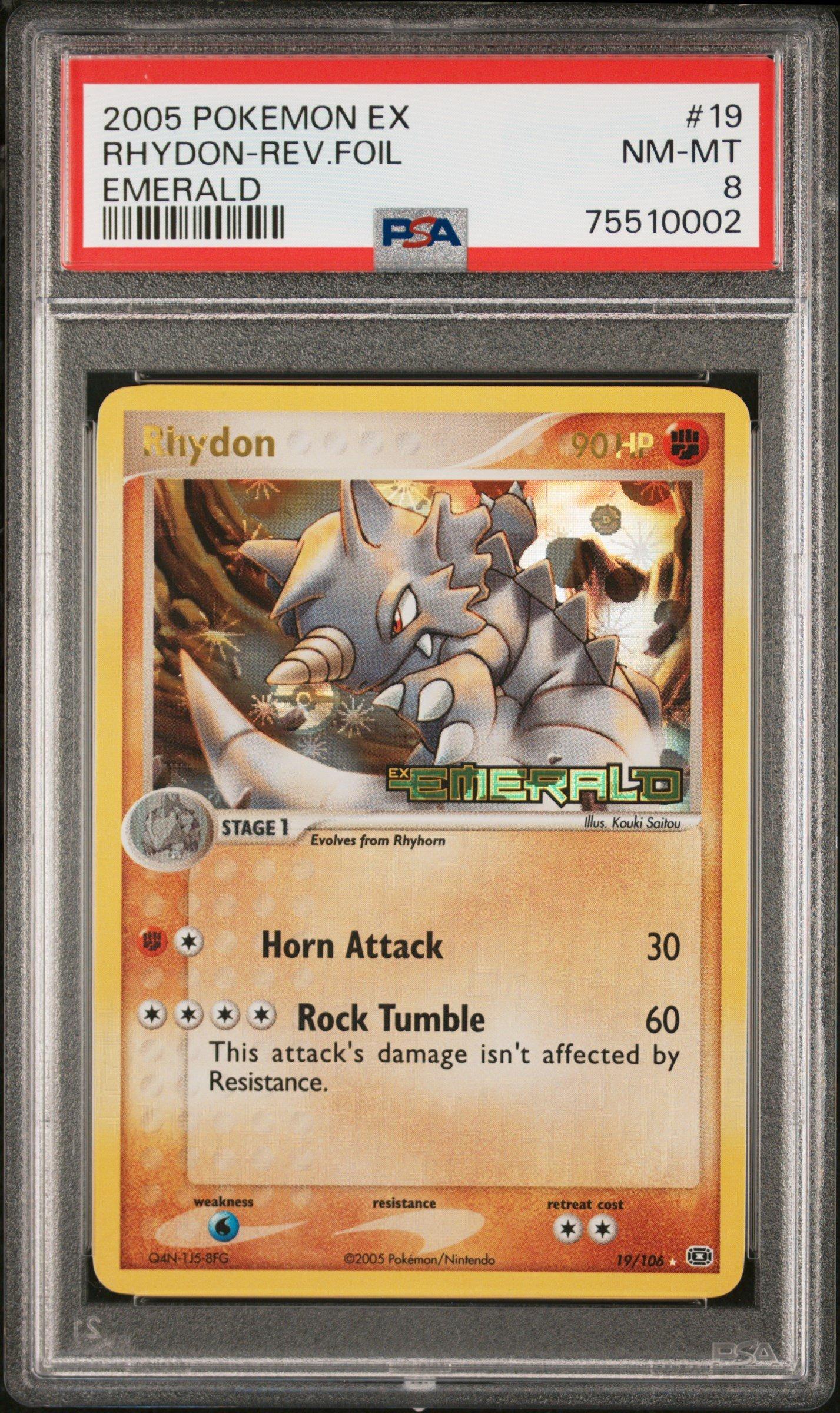 2005 Pokemon Ex Emerald 19 Rhydon-reverse Foil PSA 8