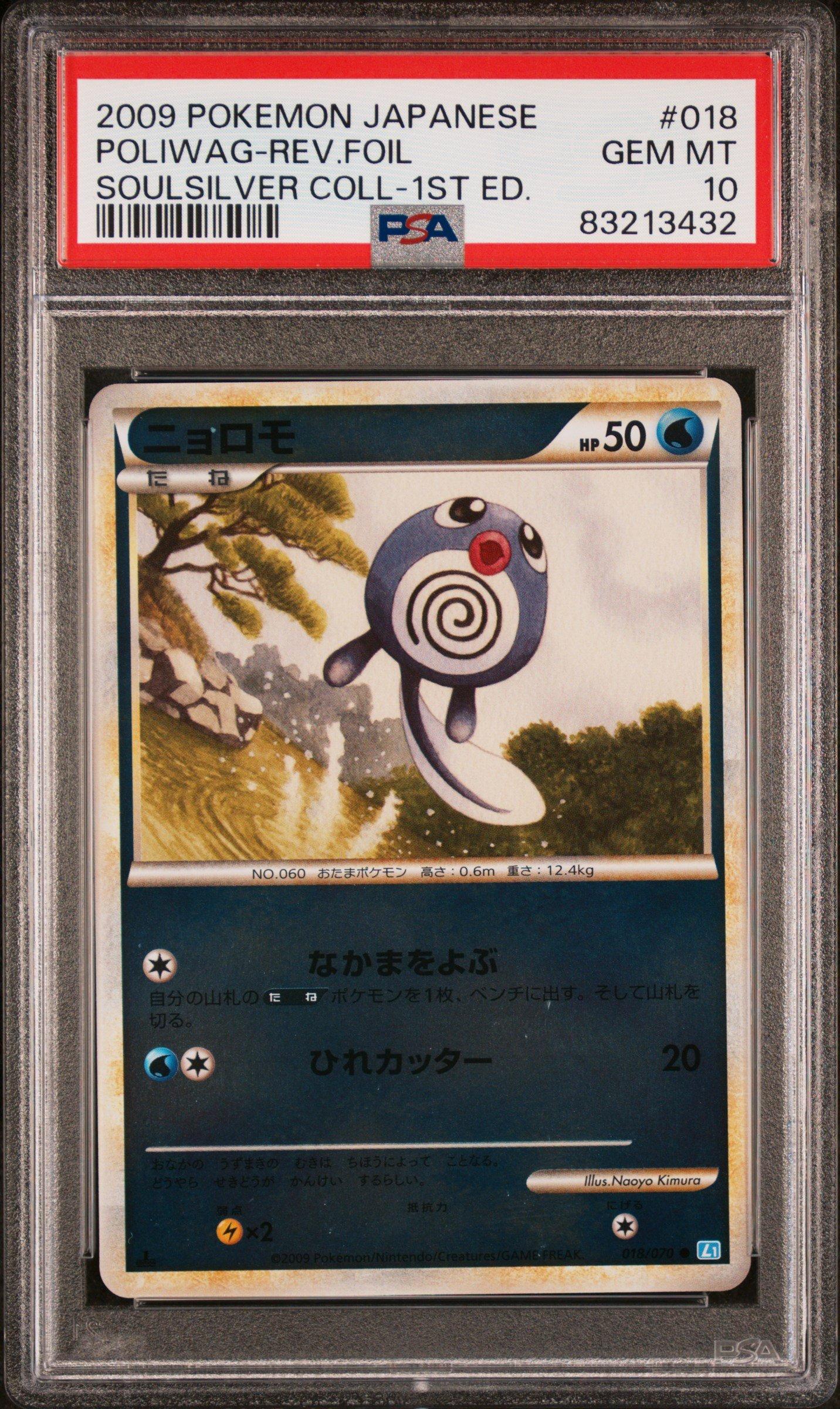 2009 Pokemon Japanese Soulsilver Collection 018 Poliwag-reverse Foil 1st Edition PSA 102009 Pokemon Japanese Soulsilver Collection 018 Poliwag-reverse Foil 1st Edition PSA 10