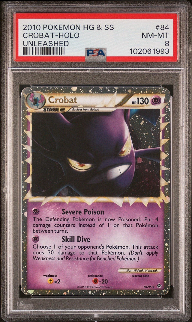 2010 Pokemon Heartgold & Soulsilver Unleashed 84 Crobat-holo PSA 8