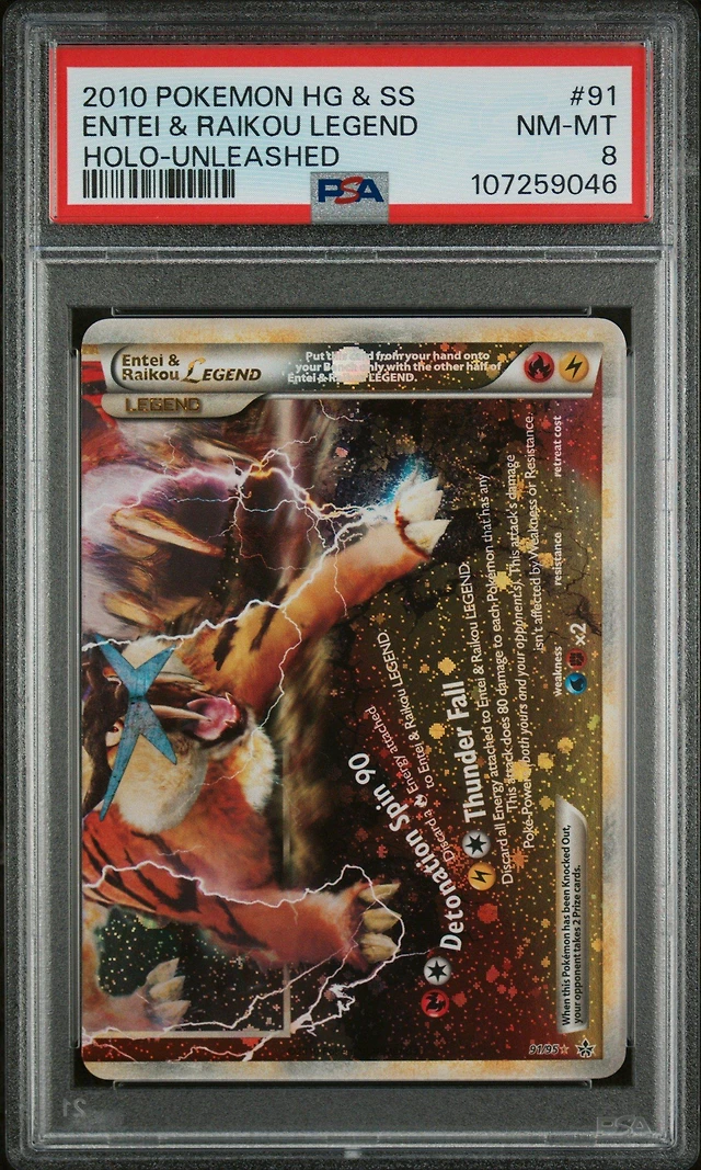2010 Pokemon Heartgold & Soulsilver Unleashed Entei & Raikou Legend-holo PSA