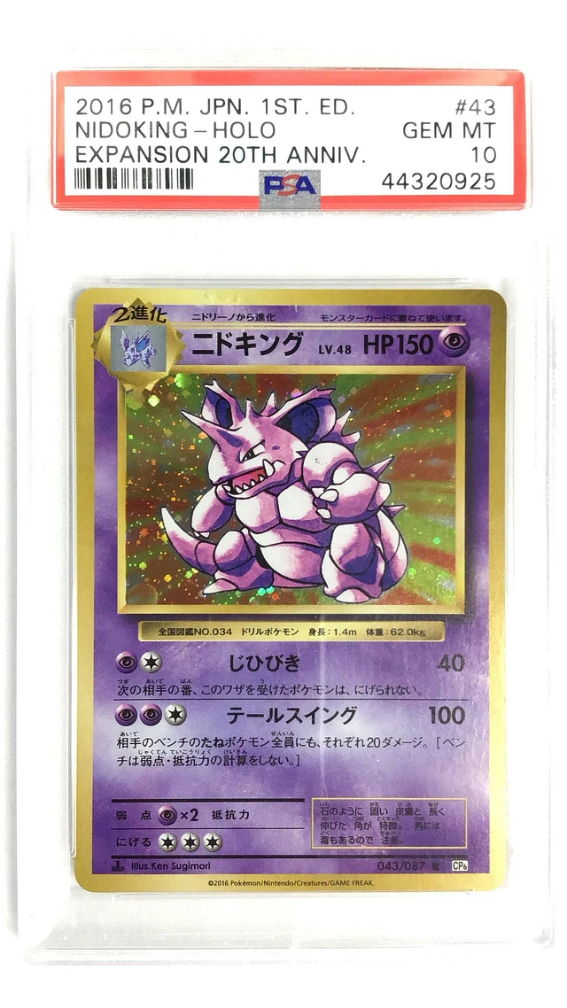2016 Pokemon Japanese Expansion 20th Anniversary 043 Nidoking-holo 1st Edition PSA