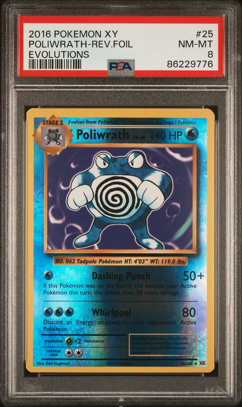 2016 Pokemon Xy Evolutions 25 Poliwrath-reverse Foil PSA 8
