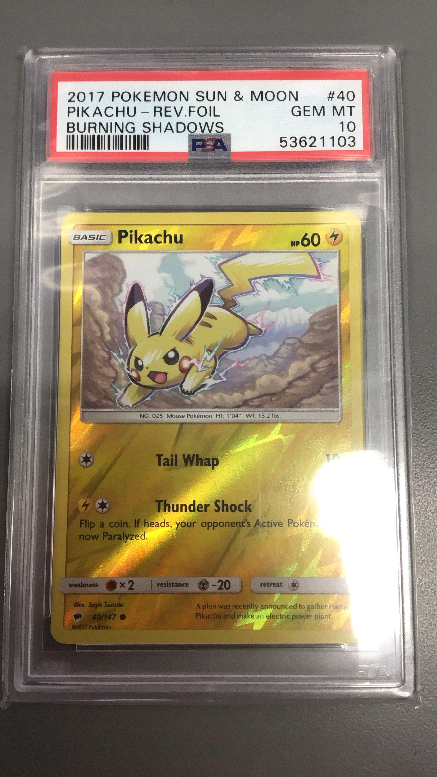 2017 Pokemon Sun & Moon Burning Shadows 40 Pikachu-reverse Foil PSA 10