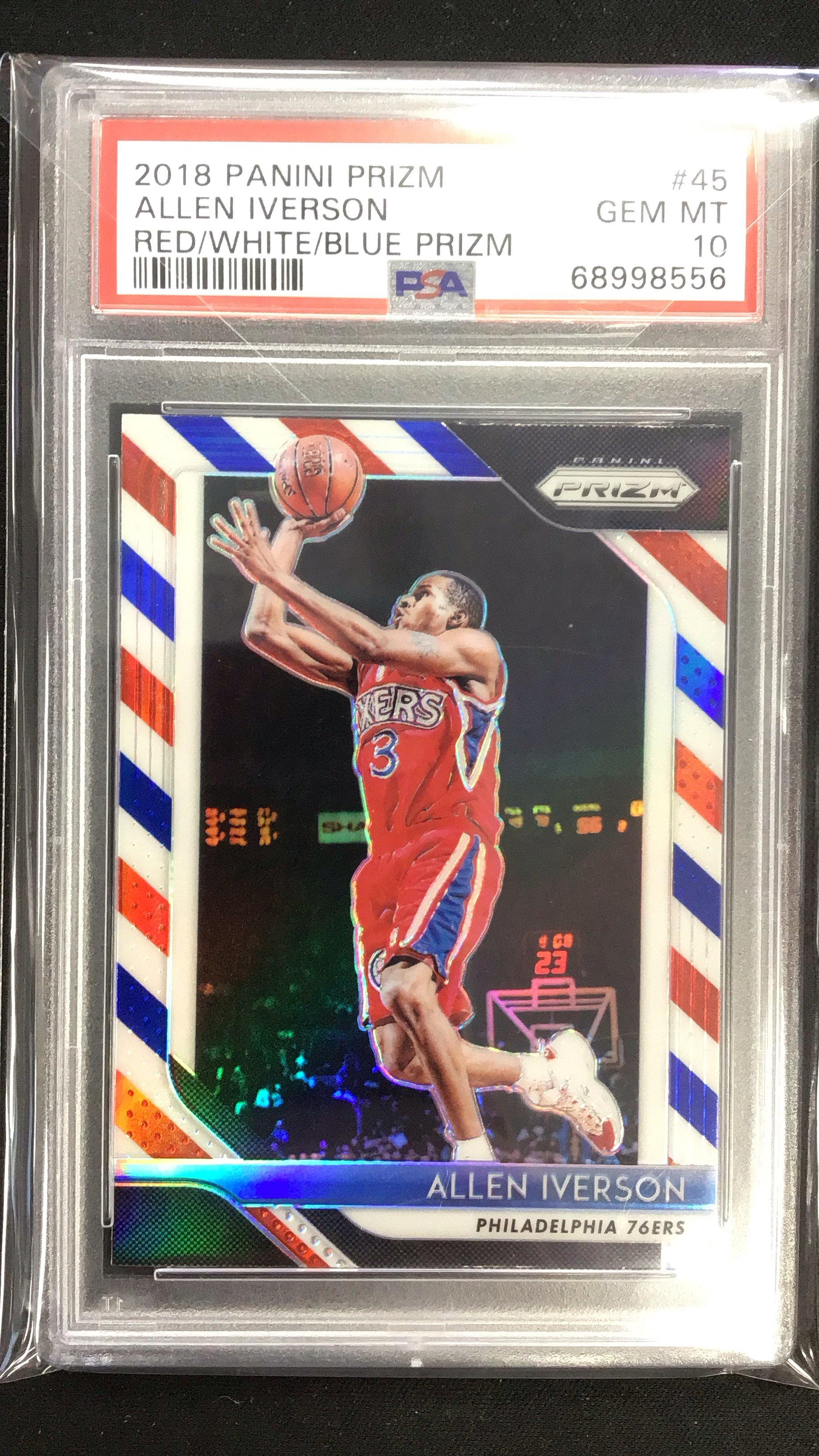 2018 Panini Prizm 45 Allen Iverson Red/white/blue Prizm PSA 10