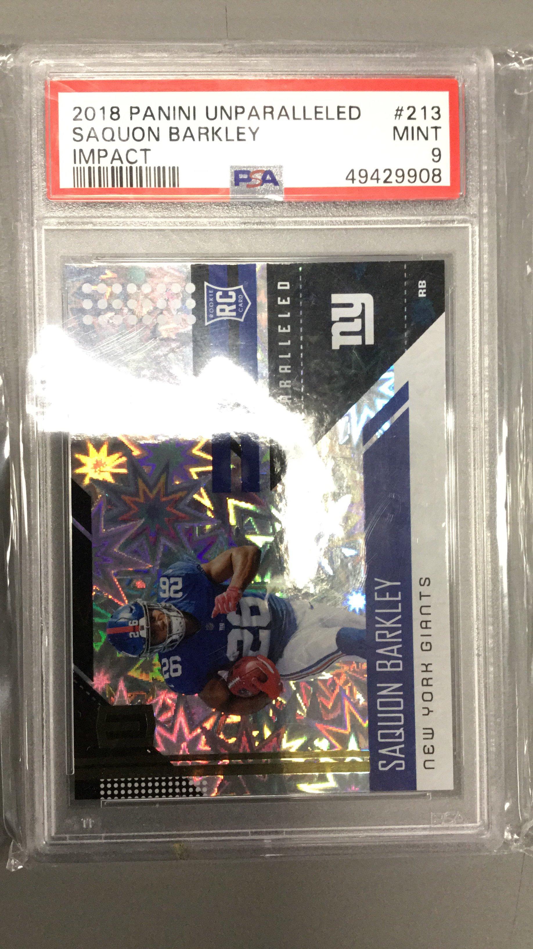 2018 Panini Unparalleled 213 Saquon Barkley Impact PSA 9