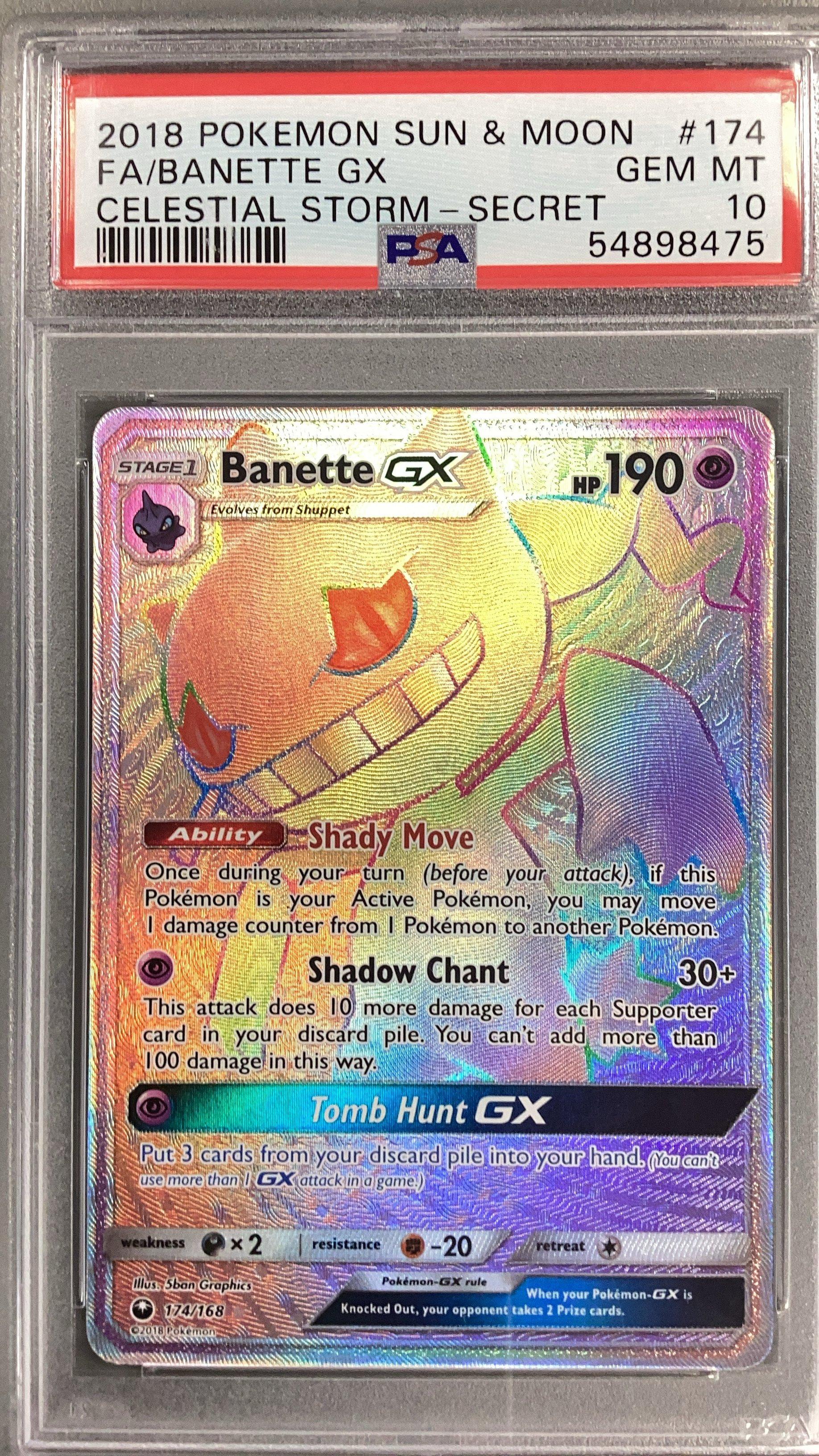 2018 Pokemon Sun & Moon Celestial Storm 174 Full Art/banette Gx Secret PSA 10 in Chattanooga, TN