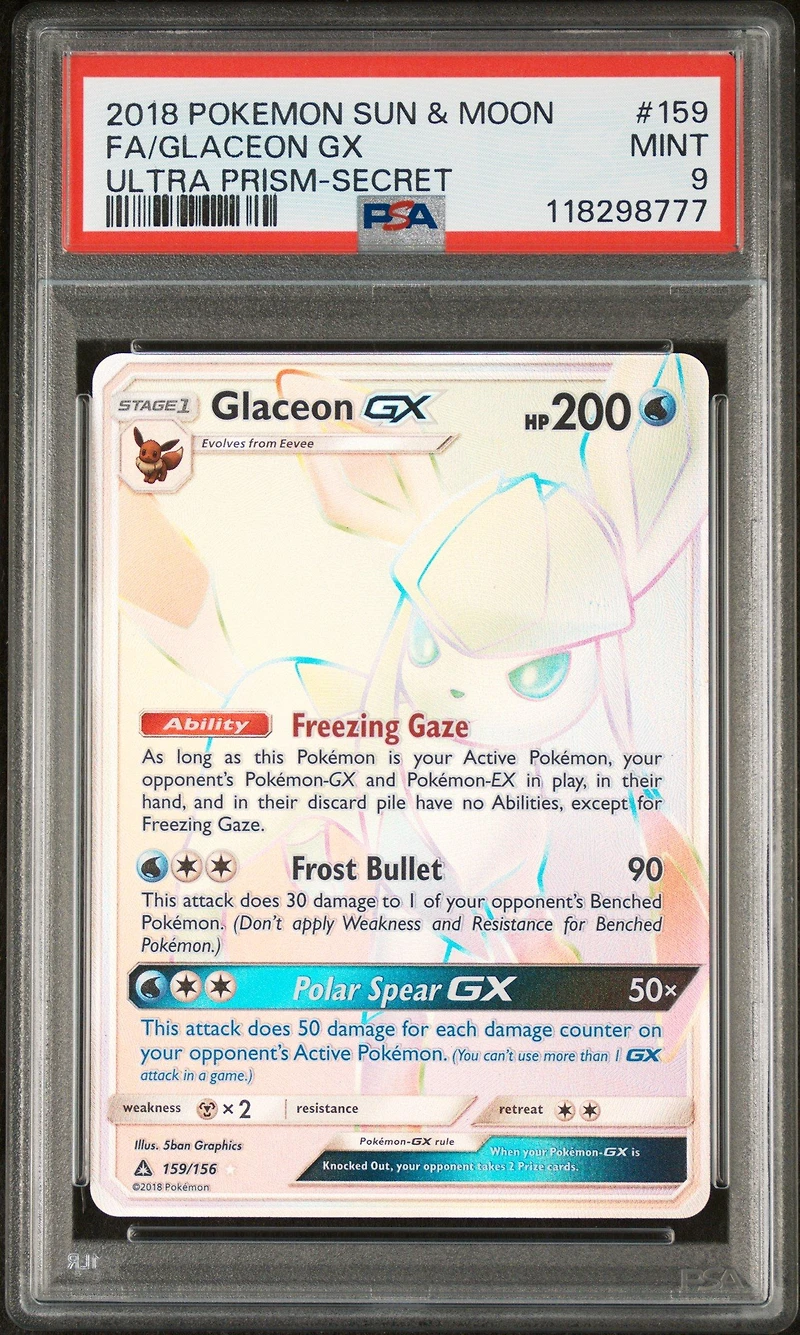 2018 Pokemon Sun & Moon Ultra Prism 159 Full Art/glaceon Gx Secret PSA 9