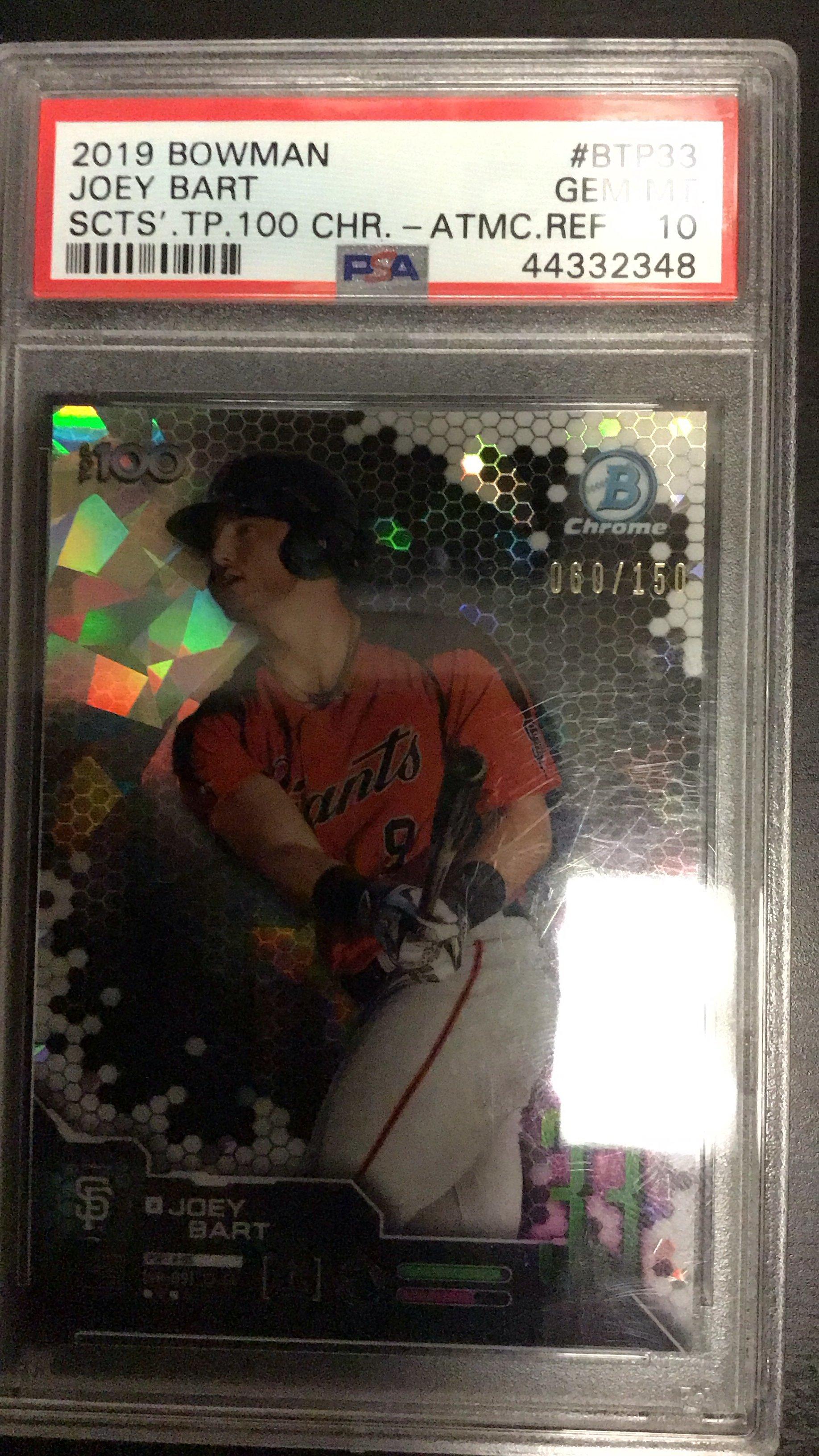 2019 Bowman Scouts' Top 100 Chrome Btp33 Joey Bart Atomic Refractor PSA 102019 Bowman Scouts' Top 100 Chrome Btp33 Joey Bart Atomic Refractor PSA 10