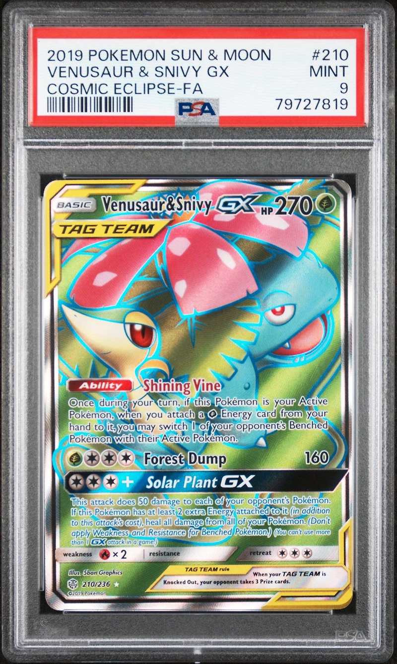 2019 Pokemon Sun & Moon Cosmic Eclipse 210 Full Art/venusaur & Snivy Gx PSA 9