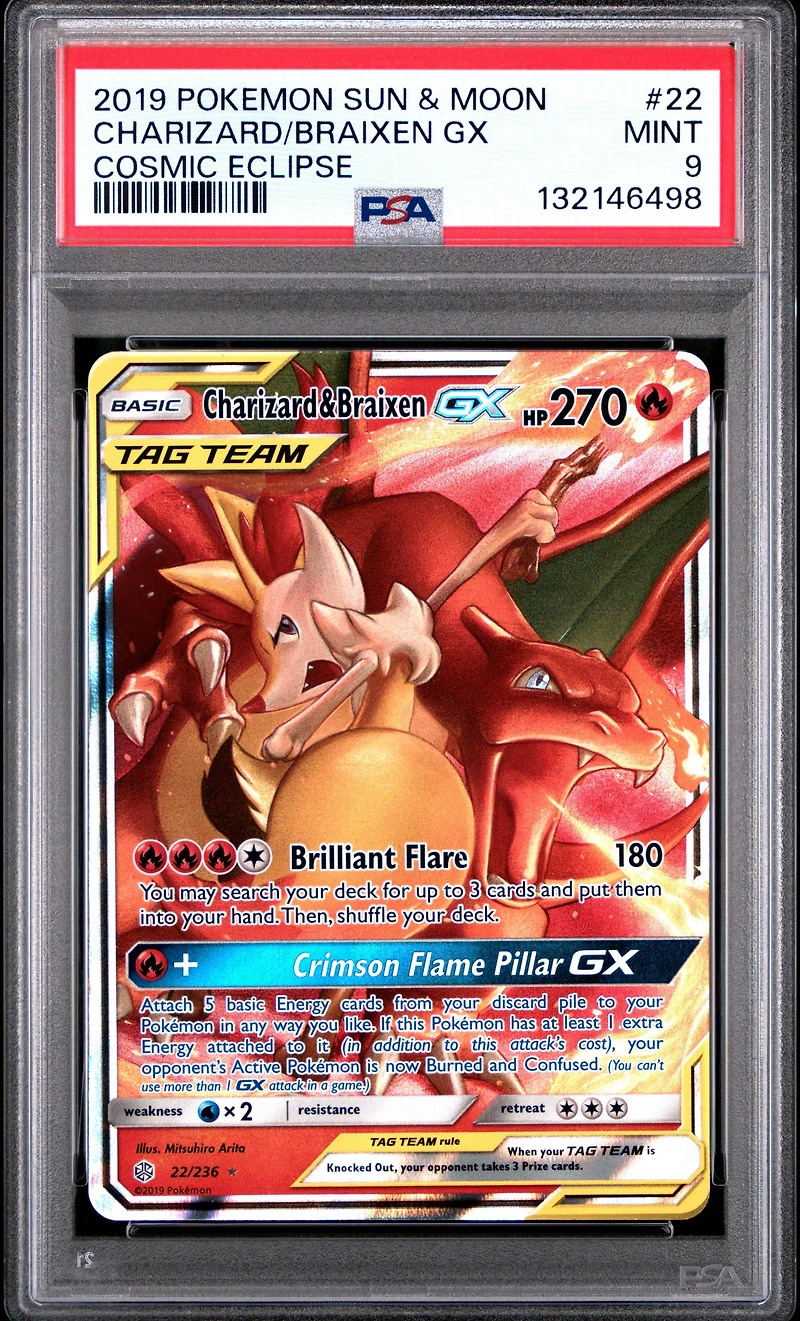 2019 Pokemon Sun & Moon Cosmic Eclipse 22 Charizard & Braixen Gx PSA