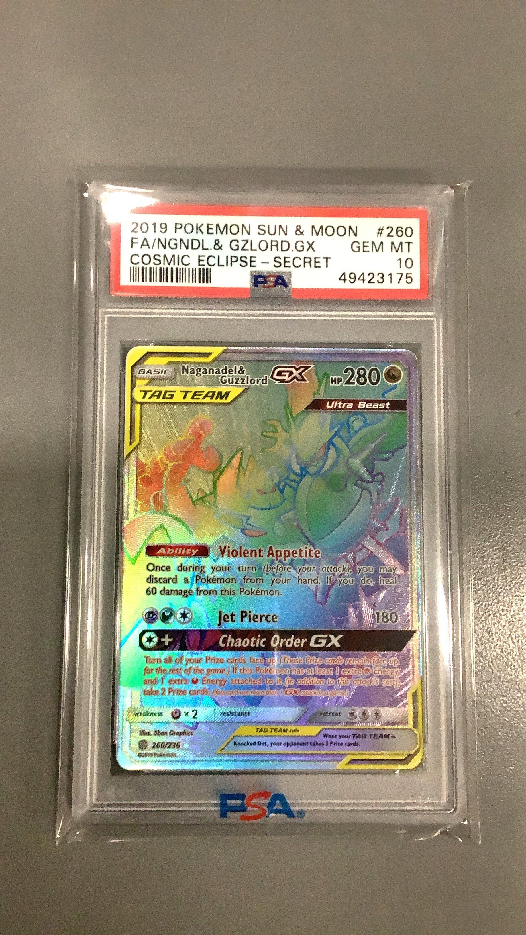 2019 Pokemon Sun & Moon Cosmic Eclipse 260 Full Art/naganadel & Guzzlord Gx Secret PSA 10