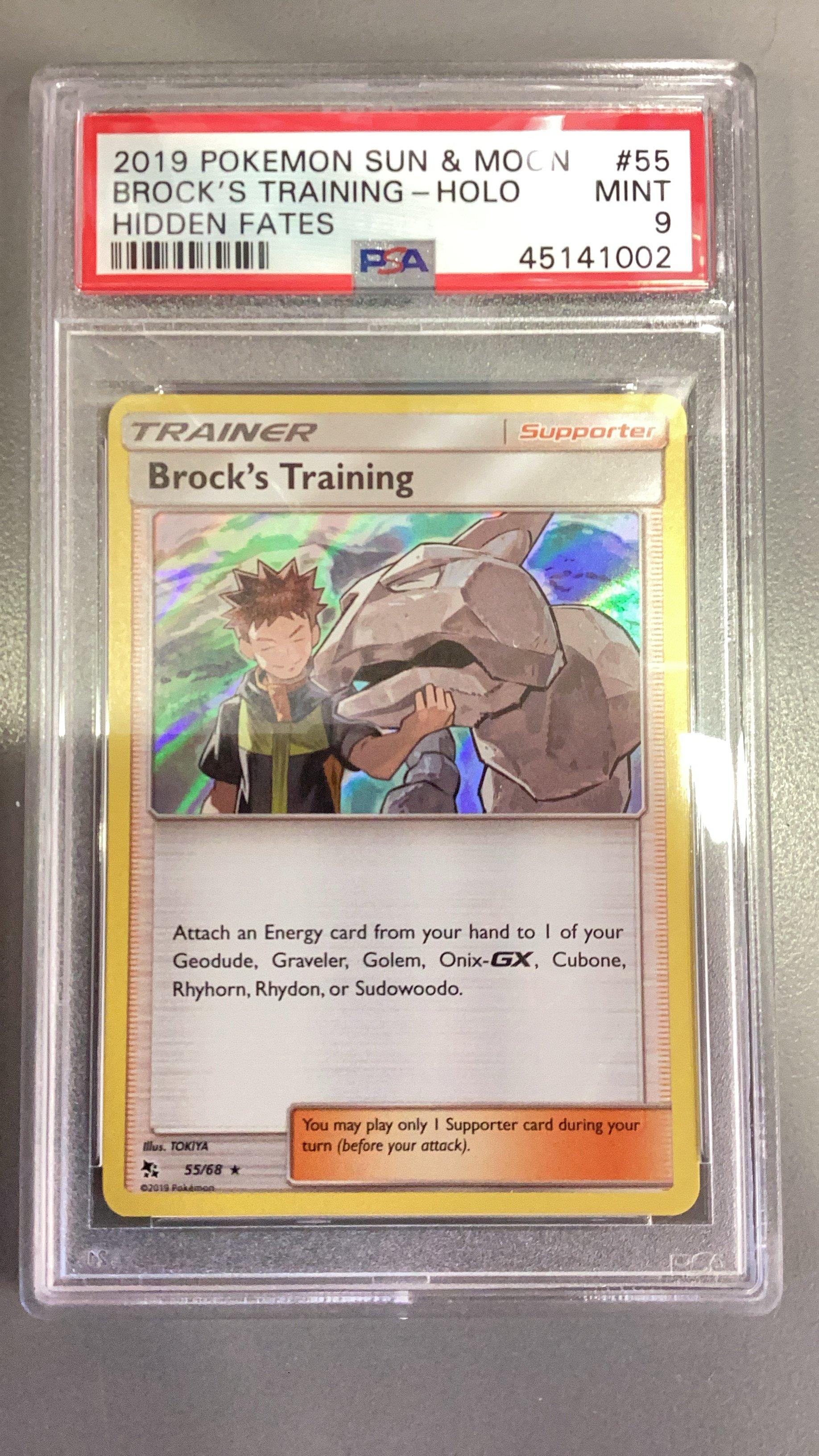 2019 Pokemon Sun & Moon Hidden Fates 55 Brock's Training-holo PSA