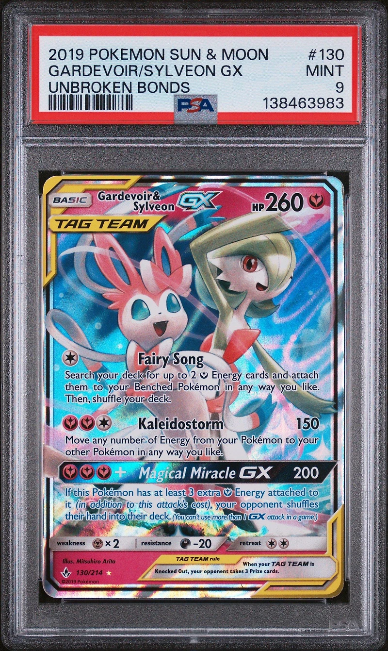 2019 Pokemon Sun & Moon Unbroken Bonds 130 Gardevoir & Sylveon Gx PSA 9
