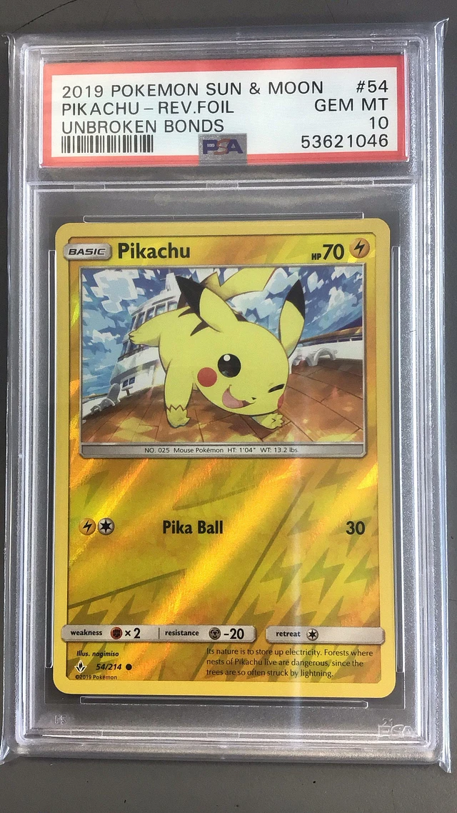 2019 Pokemon Sun & Moon Unbroken Bonds 54 Pikachu-reverse Foil PSA 10