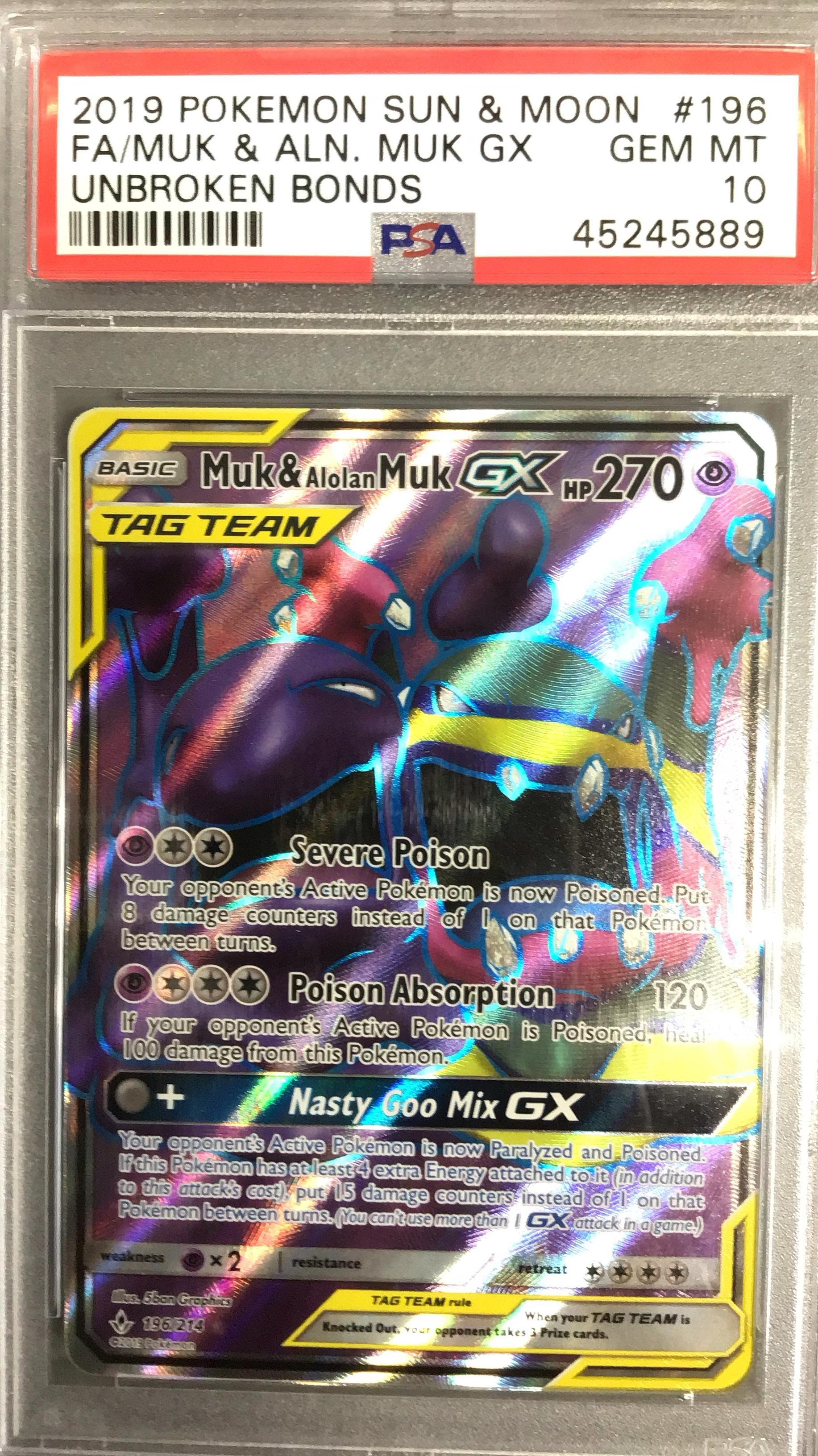 2019 Pokemon Sun & Moon Unbroken Bonds Full Art/muk & Alolan Muk Gx PSA