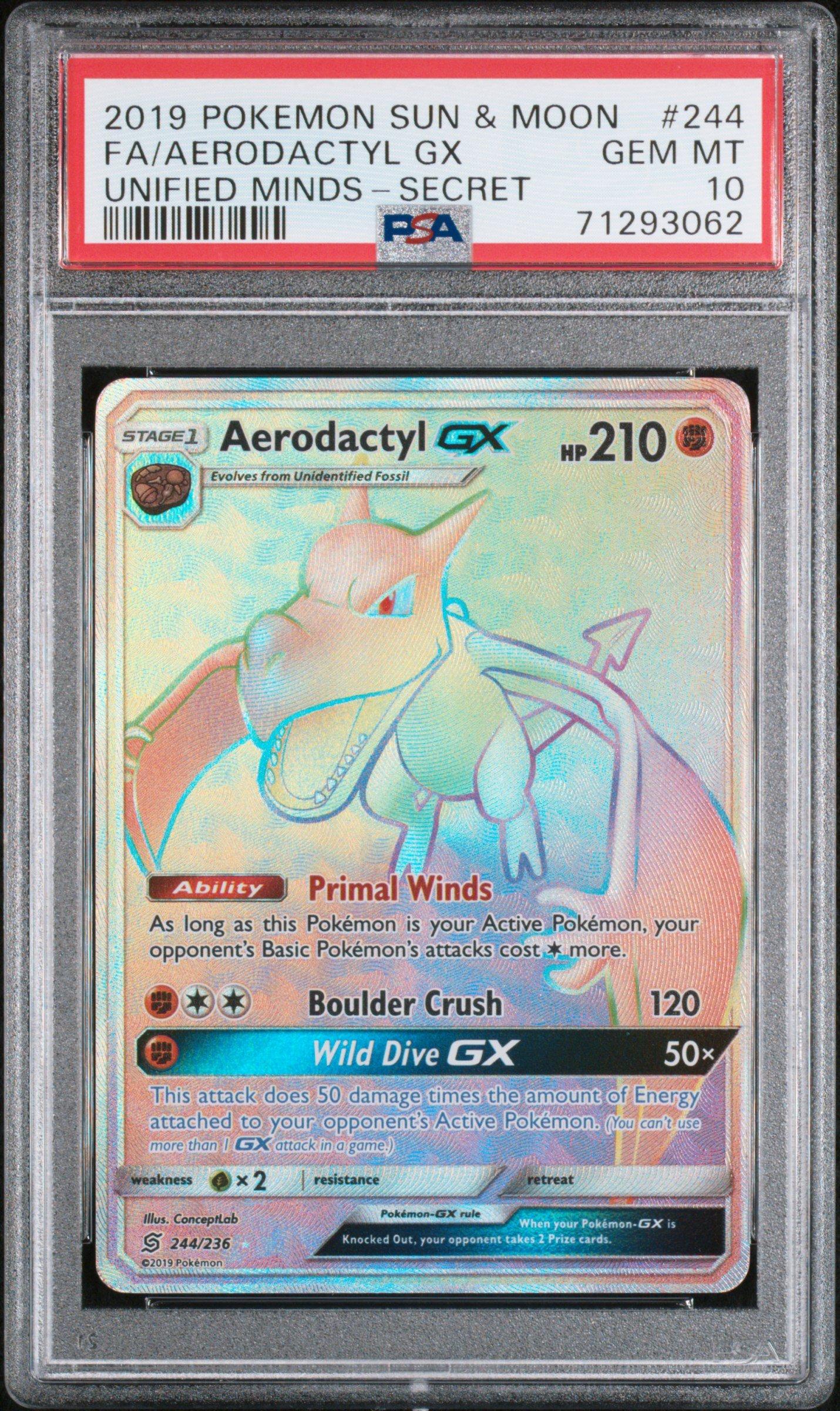 2019 Pokemon Sun & Moon Unified Minds 244 Fa/aerodactyl Gx PSA 10