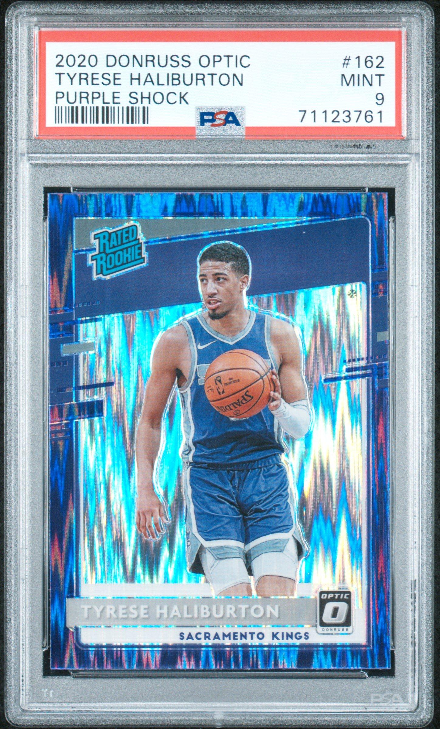 2020 Panini Donruss Optic 162 Tyrese Haliburton Purple Shock PSA 9