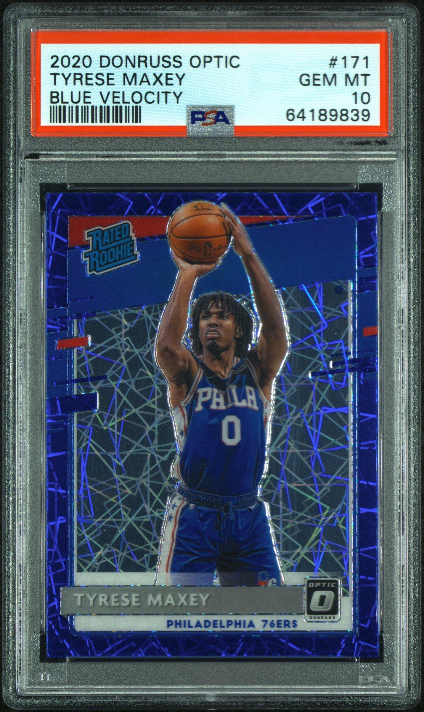 2020 Panini Donruss Optic 171 Tyrese Maxey Blue Velocity PSA