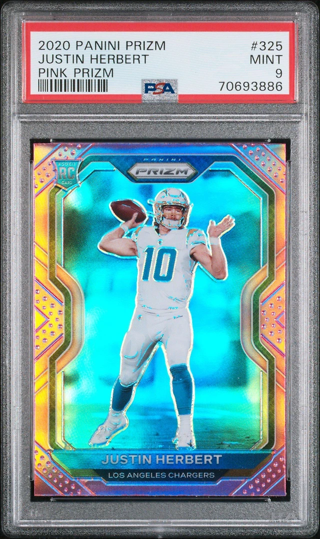 2020 Panini Prizm 325 Justin Herbert Pink Prizm PSA 9
