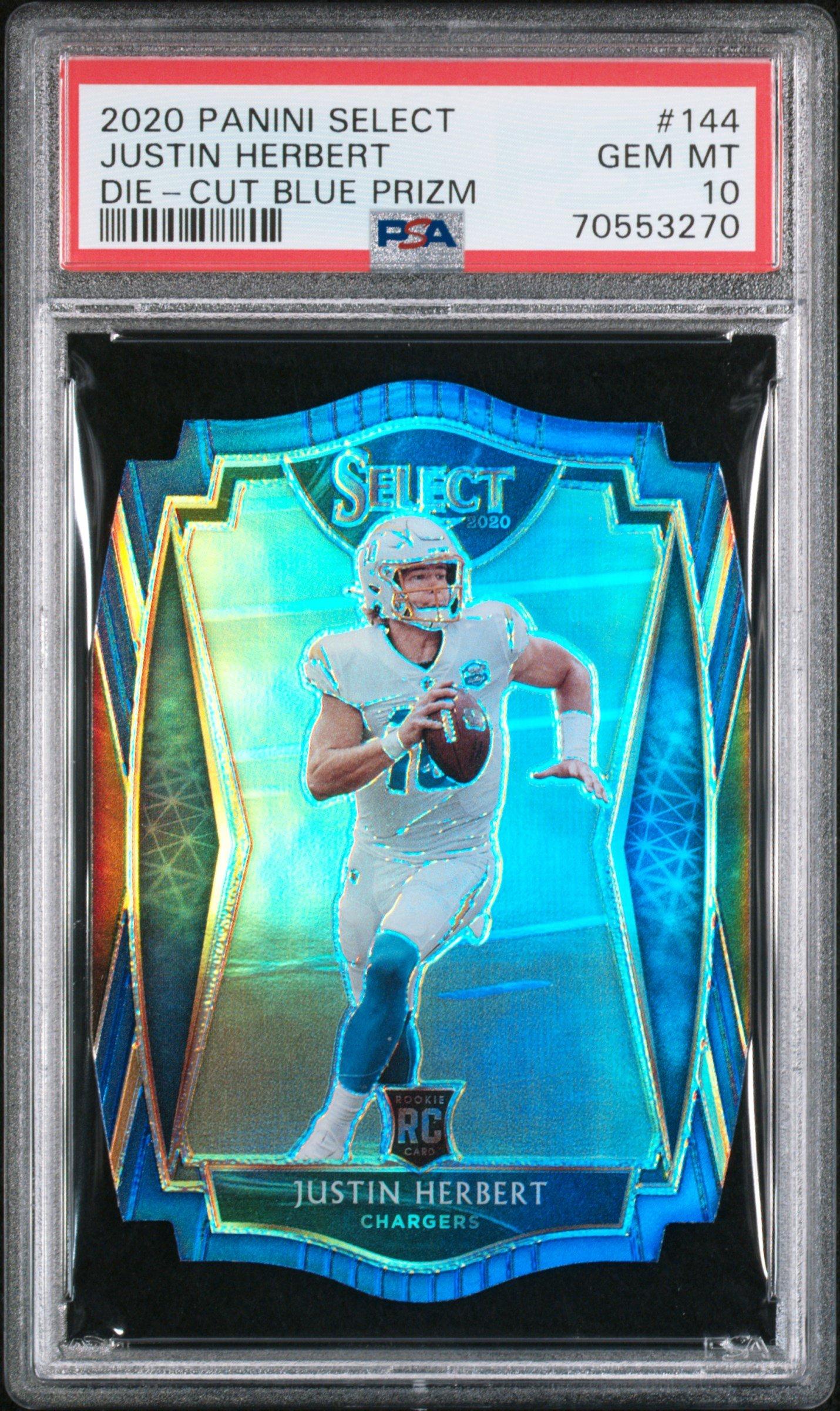 2020 Panini Select 144 Justin Herbert Die-cut Blue Prizm PSA 10