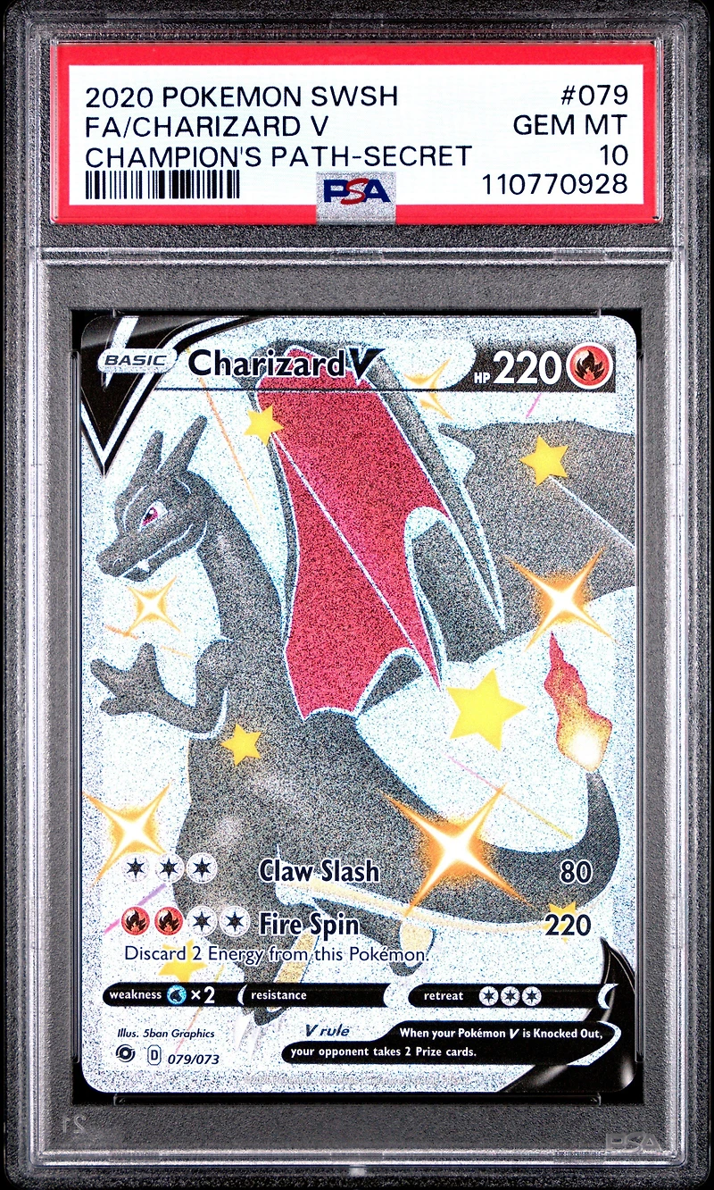 2020 Pokemon Sword & Shield Champion's Path 079 Full Art/charizard V Secret PSA 10 in Chattanooga, TN